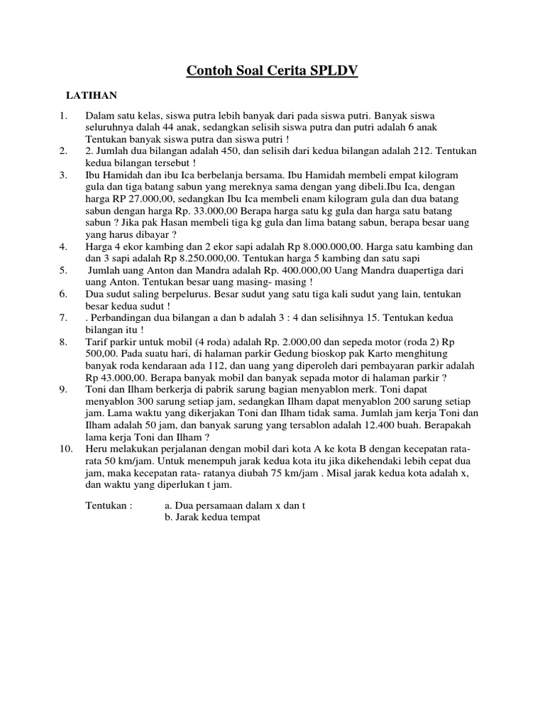 Are you looking for soal cerita spldv pdf, word document or powerpoint file formats for free? Then you already in the right place. Find any document from Microsoft Word, PDF and powerpoint file formats in an effortless way.